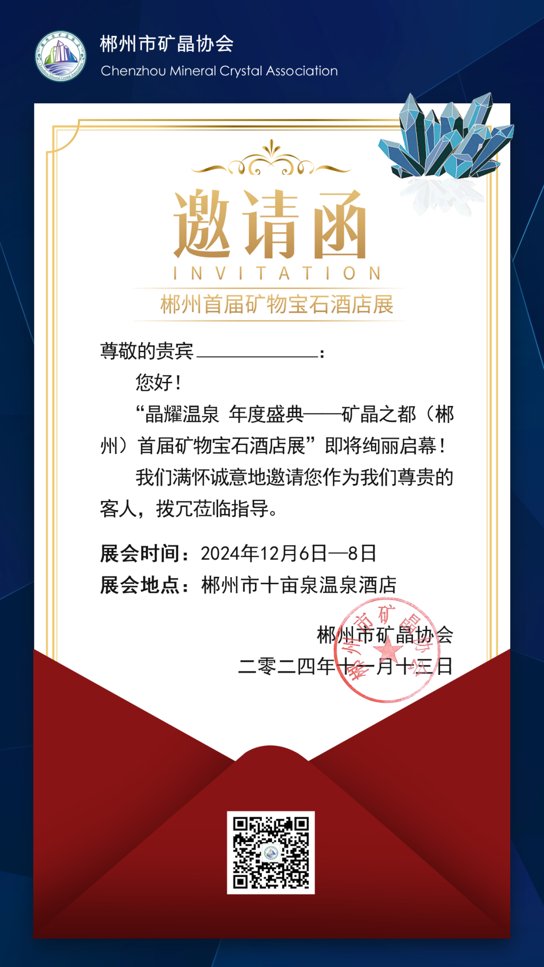 2024年12月6日-8日,郴州市礦晶協(xié)會邀您在郴州市十畝泉溫泉酒店共赴一場浪漫的“礦”世之約!