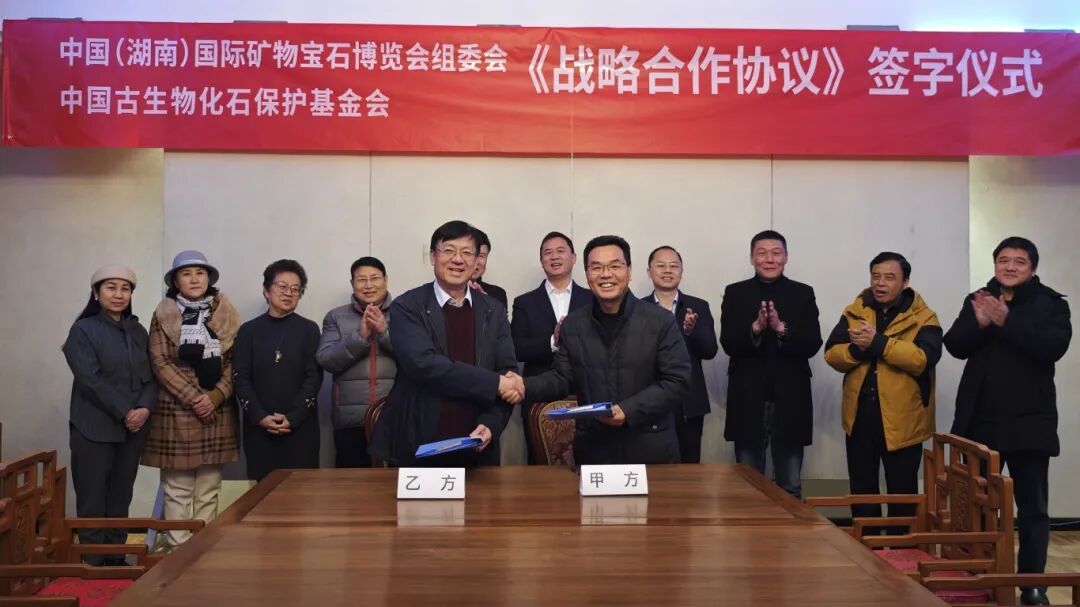 雙方約定,2025年-2028年,中國(湖南)國際礦物寶石博覽會組委會與中國古生物化石保護基金會將進一步深化合作,共同主辦礦博會,雙方全力參與商定總體工作、活動策劃及大會宣傳等方案,確保方案具有前瞻性、可行性與創(chuàng)新性。同時,雙方共同認定具體工作執(zhí)行單位,并對其工作進行全方位監(jiān)督和管理,以保障工作質(zhì)量和進度。基金會將深度參與商定礦博會關(guān)鍵要素,協(xié)助邀請知名嘉賓與專業(yè)人士;組織相關(guān)博物館負責(zé)人來郴參加學(xué)術(shù)交流等活動;負責(zé)籌備和布置主題展區(qū),從多方面打造特色鮮明的展區(qū);并協(xié)助組委會招募國際展商與買家,提升展會國際化水平與多樣性。